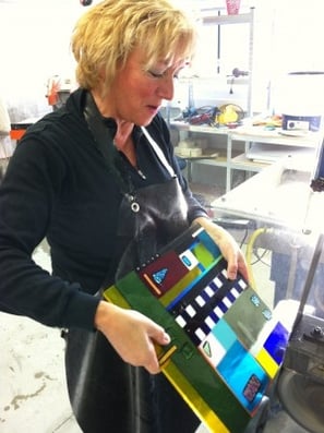 Lida Dijkstra-Pastoor aan de bandslijper.